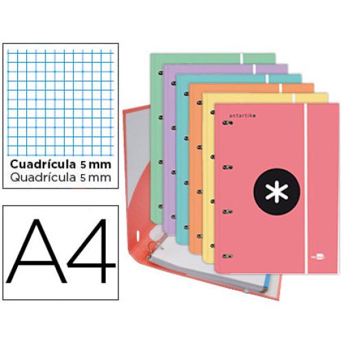 CARPETA ANTARTIK C/RECAMBIO A4 CUADRO 5MM FORRADA 4 ANILLAS 25MM SALMON cantidad